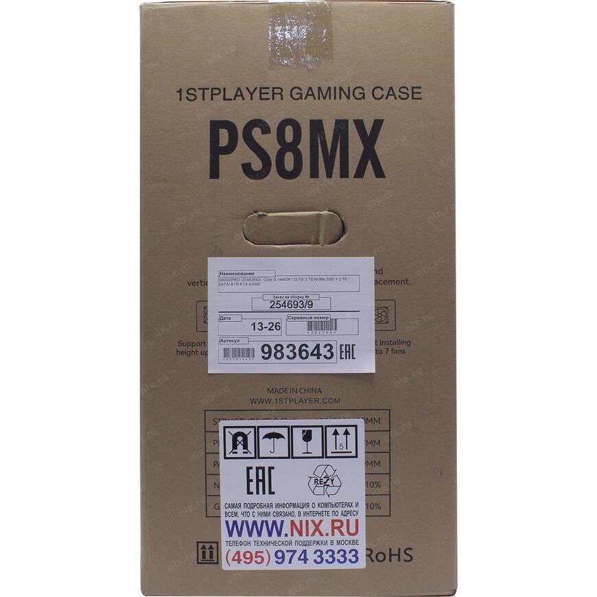 | Корпус | Miditower 1STPLAYER PROSTATION 8 MAX <PS8MX-BK-4F> Black ATX без БП |