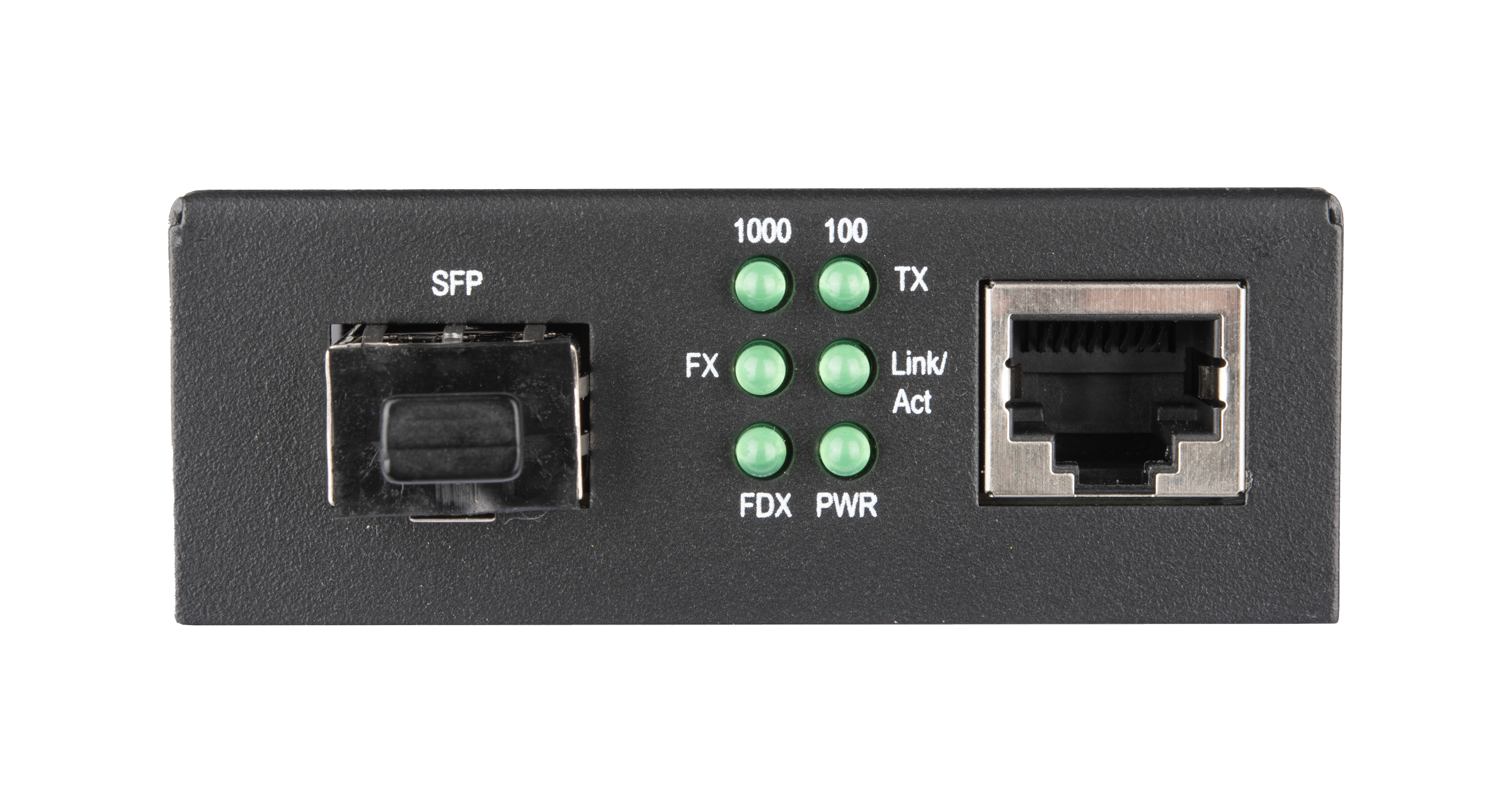 | LED индикация | PWR (питание), FX LINK/ACT (состояние оптической линии), FDX (режим работы медной линии full-duplex/half-duplex), TX LINK/ACT (состояние медной линии), TX 1000 (скорость медного соединения 1000M), FX 1000 (скорость оптического соединения 1000M) |