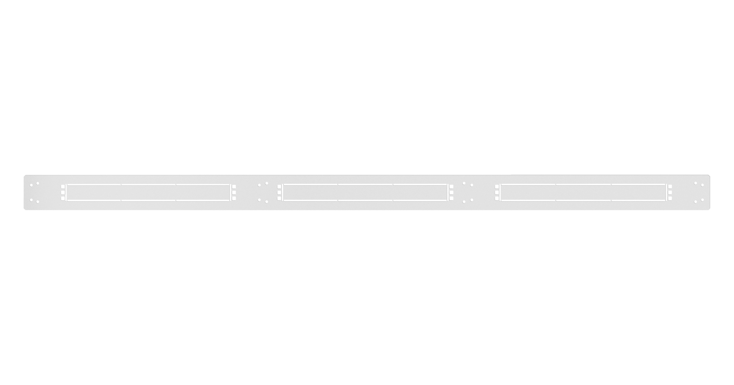 На панели расположены выламываемые заглушки и отверстия под закладные гайки для установки 19” оборудования и аксессуаров. Установка аксессуаров осуществляется комплектом крепежа TLK-FPFP (в комплект не входит). Максимально допустимый вес устанавливаемого 19” оборудования - 5кг на секцию.