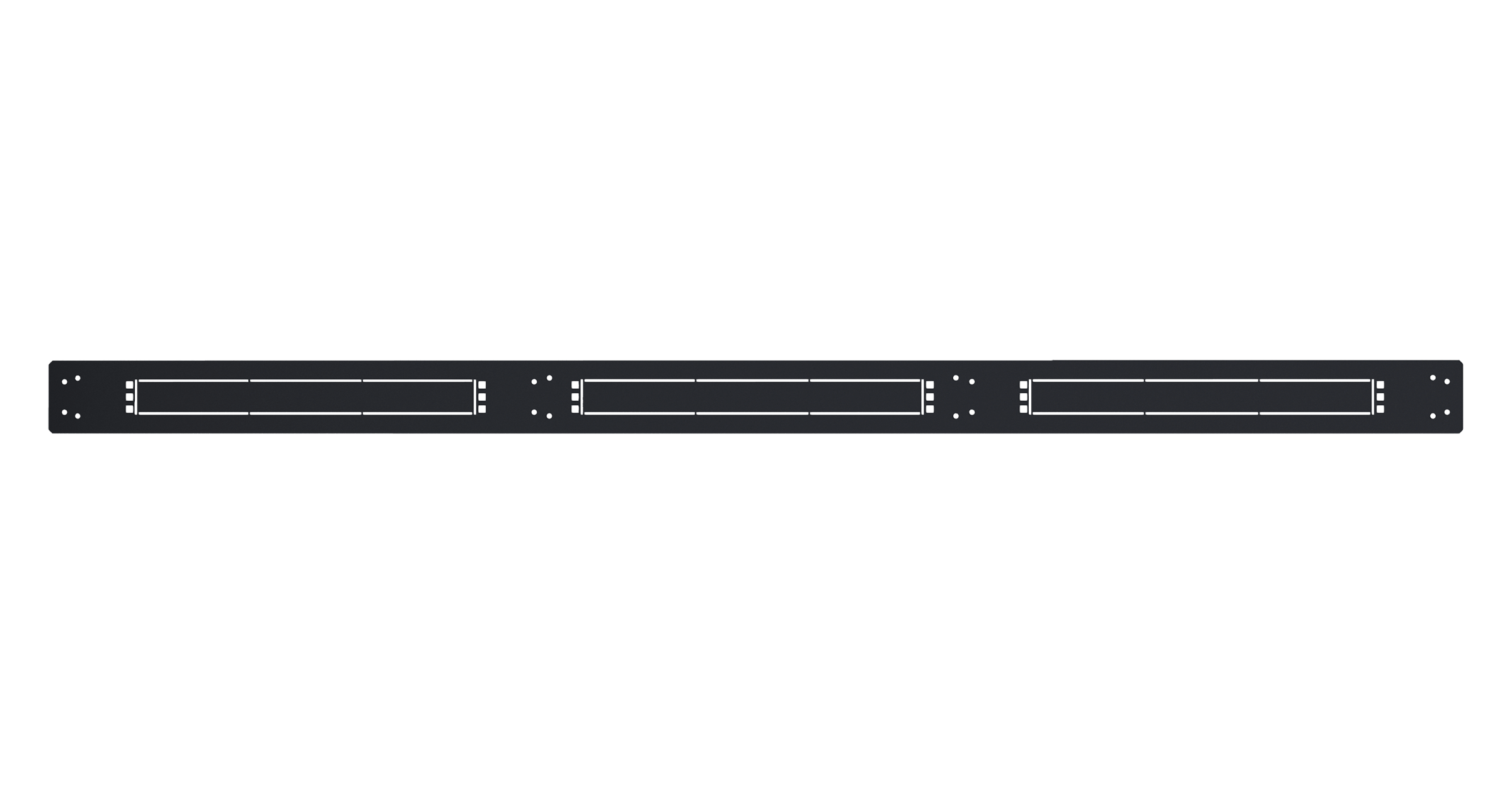Панель представляет собой продольный лист металла, изготовленный из листовой стали толщиной 1,5 мм и крепится вертикально к шкафам TFA и TFR-R высотой 42 юнита на кубы-проставки, предусмотренные для шкафов шириной 800 мм.