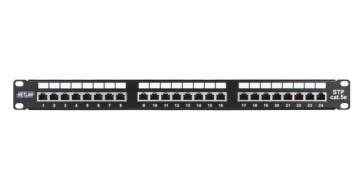 Коммутационная панель 19", 1U, 24 порта, Кат.5e, экранированная, черная