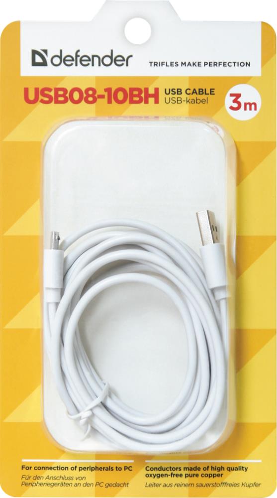 USB cable Defender USB08-10BH USB2.0 white, AM-MicroBM, 3 m