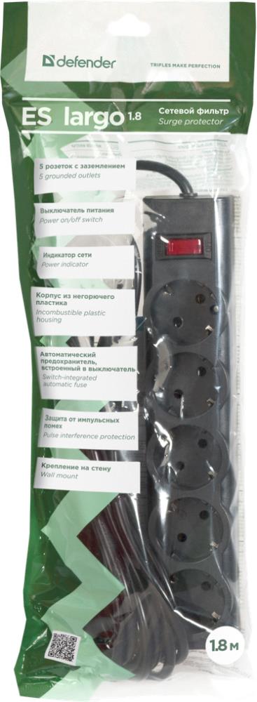 Surge protector Defender ES largo 1.8, 1.8m, black, 5 outlets