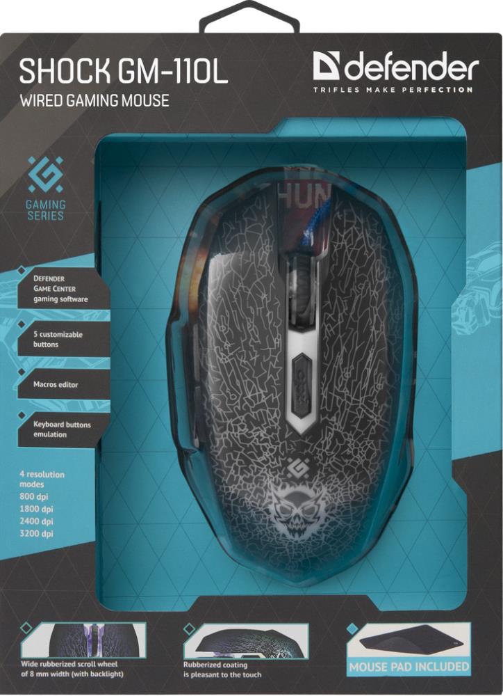 Мышка USB OPTICAL SHOCK GM-110L 52110 DEFENDER