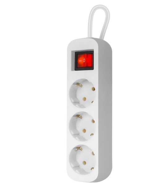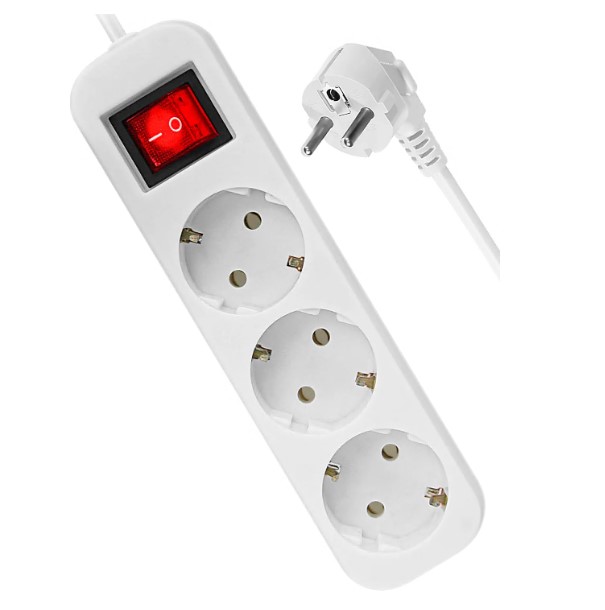Удлинитель на 3 розетки с заземлением с выключателем предназначен для одновременного подключения нескольких электроприборов в местах, удаленных от стационарных розеток.