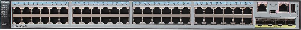 Коммутатор Huawei S5720-56C-EI-AC (48x GE RJ45 ports, 4x 10GE SFP+ ports, 1x Интерфейсный Слот /варианты: 2x 10GE SFP+ subcard, 2x 10GE RJ45 subcard, 2x 40GE QSFP+ stack subcard + 40GE DAC кабель/; Forwarding: 162Mpps; Switching: 598 Gbit/s; MAC таблица: 64k; Управление: Web, SNMP, консольный порт, уровень L3+; Маршрутизация: IGMP/MLD snooping, IGMP/PIM, RIP v0/ v2, RIPng, ECMP, 6to4 tunnel, ISATAP; Динамическая маршрутизация: MPLS L3VPN, OSPF, OSPFv3, BGP, BGP4+, IS-IS, IS-ISv6; Надежность: STP, RSTP, MSTP, LACP, LAGs (до 128), ERPS, OAM, Huawei RRPP / SEP / Smart Link; Анализ Трафика: sFlow, QoS, ACL; Защита доступа: DHCP server / snooping / relay / security; Поддержка стандартов: Auto MDI/MDIX, VLAN /4k, QinQ, Guest, Voice, VGRP/, Jumbo Frame /10k/, IPv6; Совместимость: VBST /совместимо с PVST, PVST+, RPVST/, LNP /аналогично DTP/, VCMP /аналогично VTP/; Энергосбережение: три режима; Виртуализация: iStack, SVF; PSU: 150W AC 1+0) [02359504]