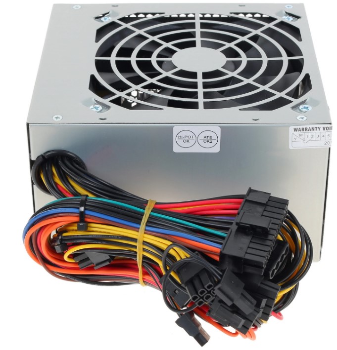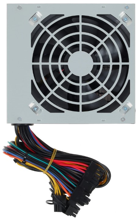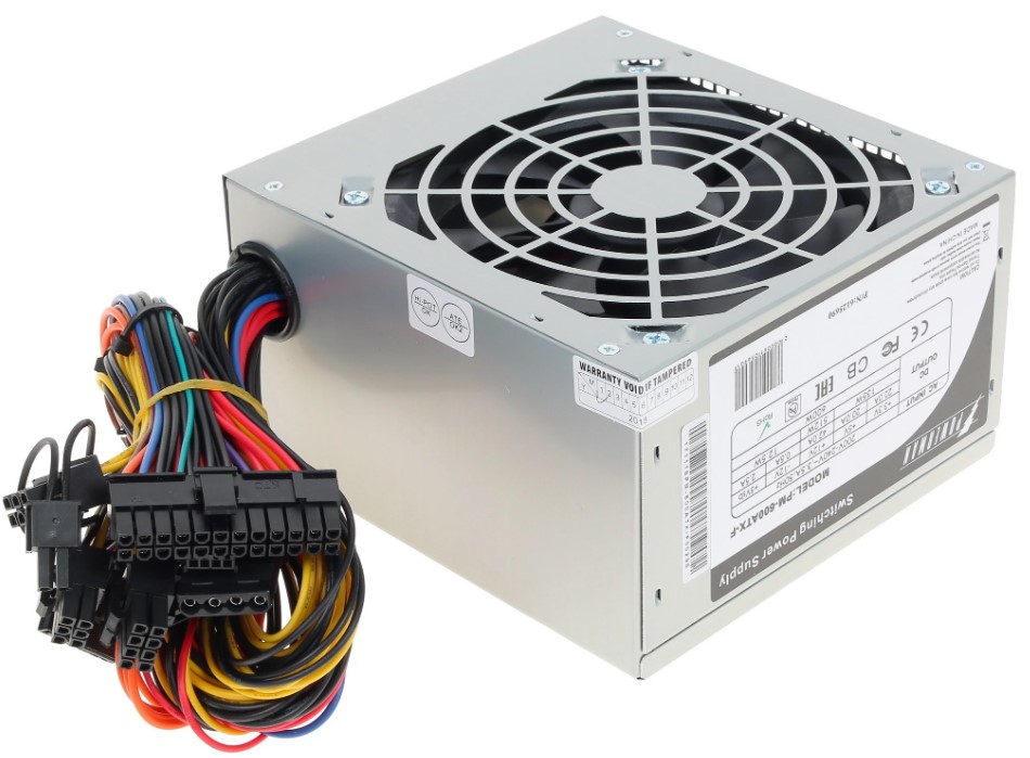 Блок питания Powerman 600W [PM-600ATX-F] оборудован несъемными выходными кабелями с разъемами 20+4 pin (основной разъем питания), 1x 4+4 pin CPU, SATA x5, 2x 6+2 pin PCI-E, 2x 4-pin Molex и 1x 4-pin Floppy для присоединения всех компонентов системы, нуждающихся в энергии. Эта модель располагает активной системой охлаждения, в которую входит один эффективный вентилятор размерами 120x120 мм. Он обеспечивает отвод избыточного тепла от БП при любой нагрузке.
