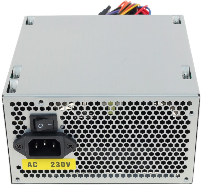 Блок питания Powerman 600W [PM-600ATX-F] в корпусе серого цвета обеспечивает полную выходную мощность на уровне 600 Вт и может обеспечивать энергией все компоненты системного блока домашней станции со средним энергопотреблением, офисного компьютера. Он принадлежит к числу моделей форм-фактора ATX и предполагает работу при уровне входного напряжения 230 В. БП предлагается вам без сетевого кабеля питания для подключения к розетке, который вы сможете приобрести отдельно.