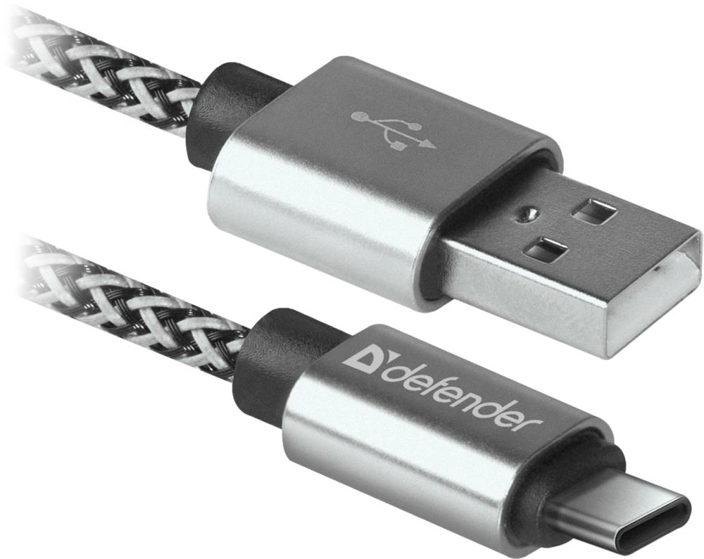 USB cable Defender USB09-03T PRO USB2.0 White, AM-Type-C, 1m, 2.1A