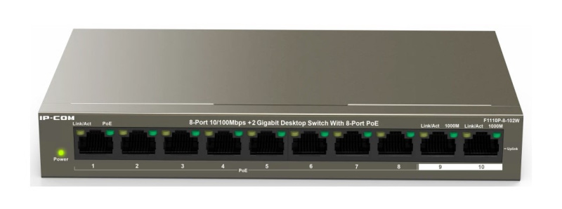 Коммутатор IP-COM F1110P-8-102W представляет собой производительное решение неуправляемого типа, способное самостоятельно передать данные клиентам при помощи встроенной таблицы MAC-адресов. В сочетании с коммутацией Store and Forward, предварительно проверяющей данные на ошибки перед отправкой, и протоколами безопасности это обеспечивает простое использование и надежно защищает сеть от сбоев, перегрузок и различных угроз. Благодаря этим особенностям устройство станет отличным выбором для создания или модернизации уже существующей сети у вас дома или в офисе, а также отлично подойдет для развертывания на ее основе различных «облачных» и локальных решений.