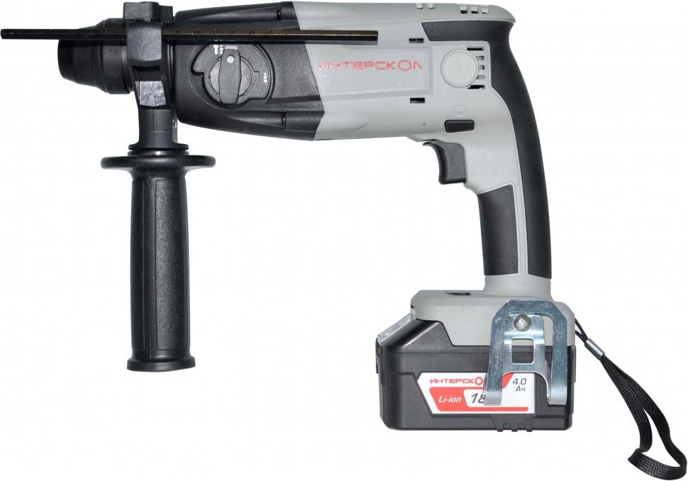 Перфоратор оснащен Li-ion слайдерными аккумуляторами универсальной аккумуляторной платформы ИНТЕРСКОЛ.