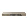 Базовая скорость коммутатора – 100 Мбит/с. Общее количество Ethernet-портов – 26 (2 порта имеют скорость 1 Гбит/с). В оснащение модели также входит порт SFP. Важной особенностью коммутатора является наличие грозозащиты.