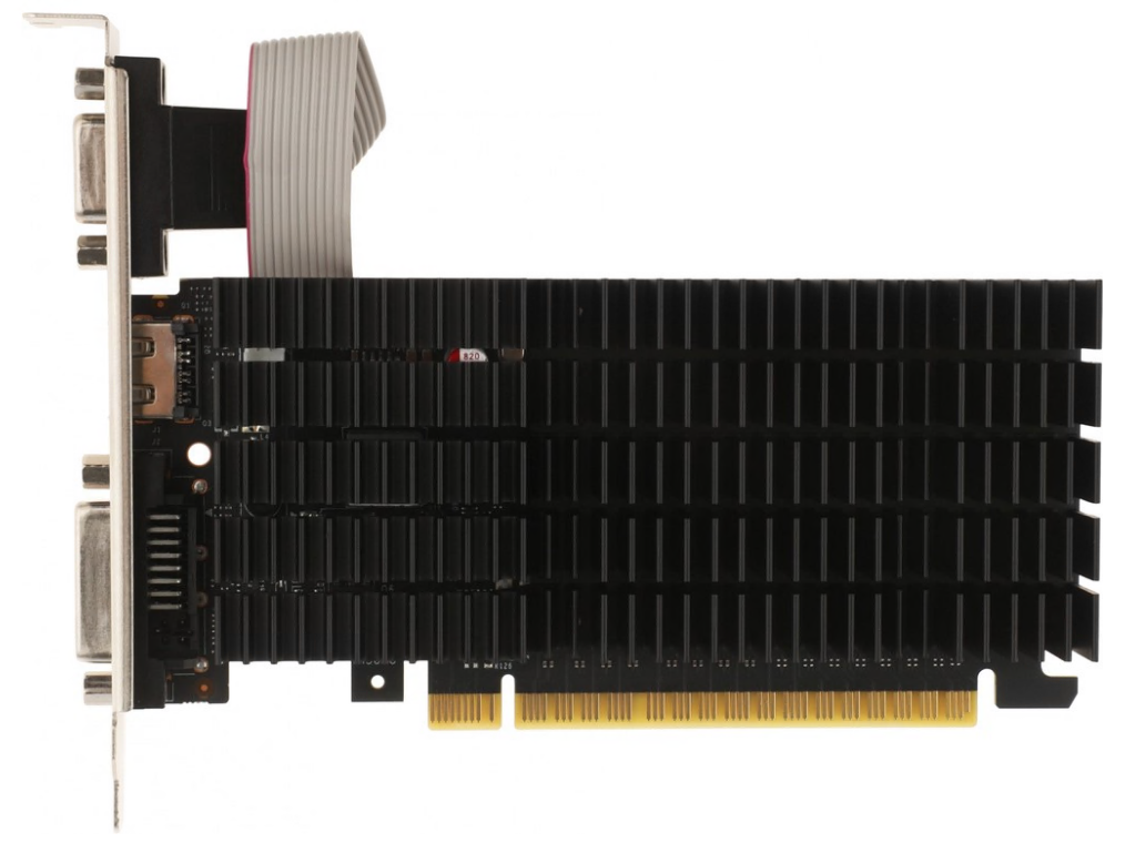 Видеокарта оснащена активным охлаждением, которое эффективно поддерживает стабильную и безопасную температуру компонентов. Система охлаждения представлена одним осевым кулером, который имеет небольшую толщину и не закрывает соседние слоты на материнской плате.