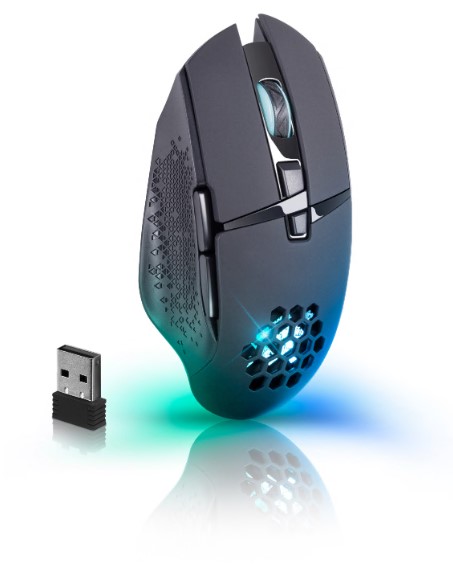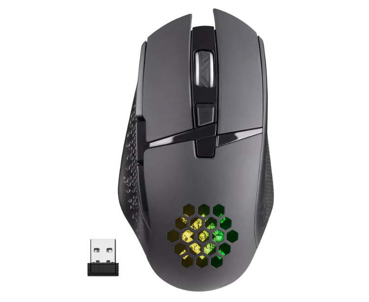 Стильная, удобная игровая мышка с трендовым дизайном "соты". Будет удобна для крупной ладони. Самое главное: никаких проводов! Мышка оснащена встроенным аккумулятором, зарядить который можно кабелем из комплекта.