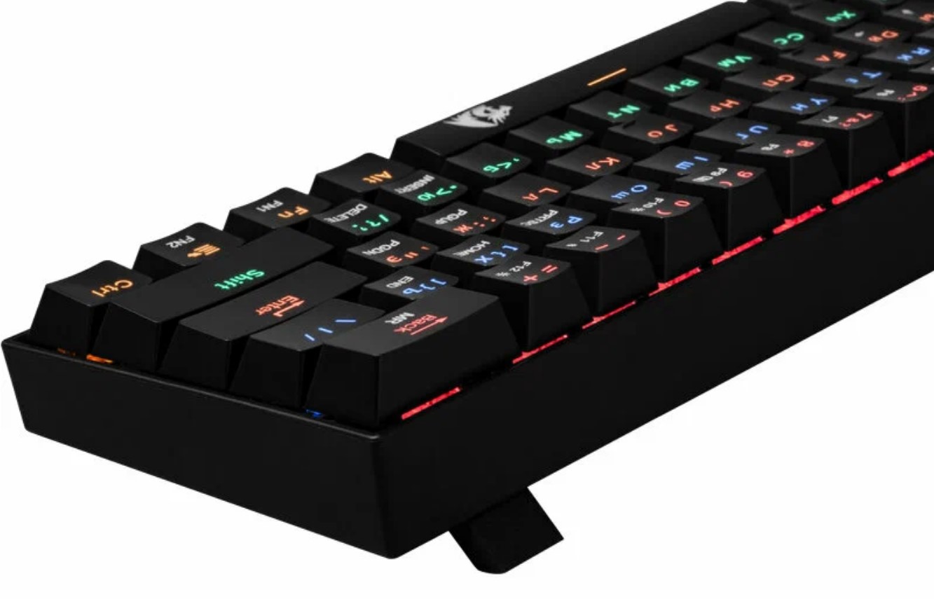 Укороченный и стильный корпус с прекрасным функционалом для профессионалов, экономящих место на рабочем или игровом столе. Тихие механические переключатели OUTEMU RED, ударопрочная влагоустойчивая конструкция с регулируемой радужной подсветкой, аппаратная блокировка клавиши WIN во время игры.