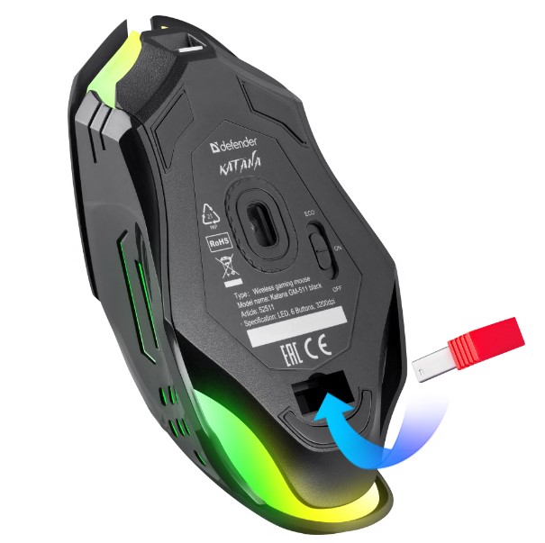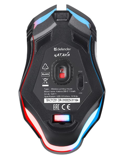 Мышка USB GAMING WRL KATANA GM-511 BLACK DEFENDER
