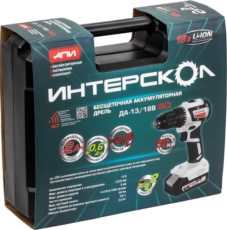 Аккумуляторная бесщеточная дрель-шуруповерт ДАУ-13/18В 50 ИНТЕРСКОЛ 802.2.2.70