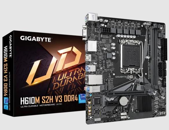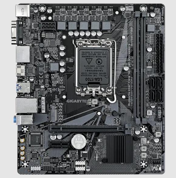 Материнская плата GIGABYTE H610M S2H совместима с процессорами Intel с ядрами Alder Lake и Raptor Lake. Тип процессорного сокета – LGA 1700. Такие CPU являются одними из самых распространенных. 2 слота DDR4 позволяют использовать до 64 ГБ оперативной памяти. Важной особенностью платы является наличие разъема M.2, обеспечивающего возможность установки скоростного твердотельного накопителя, поддерживающего интерфейс NVMe.