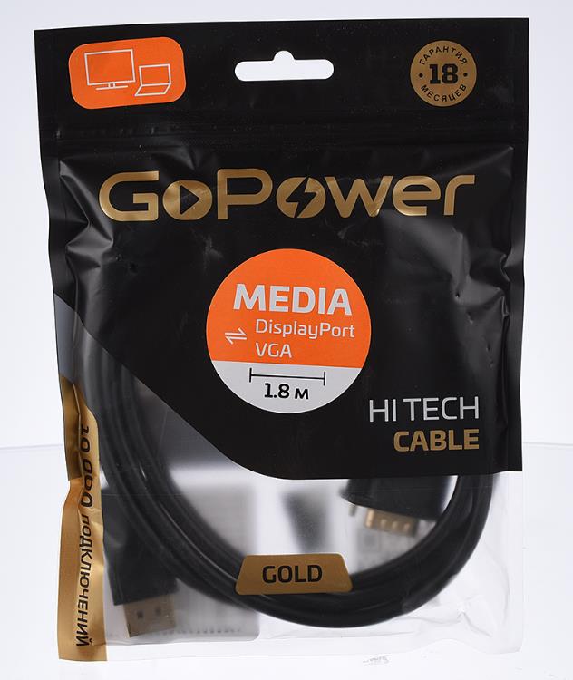 Кабель DP/VGA 1.8M 00-00027497 BLACK GOPOWER