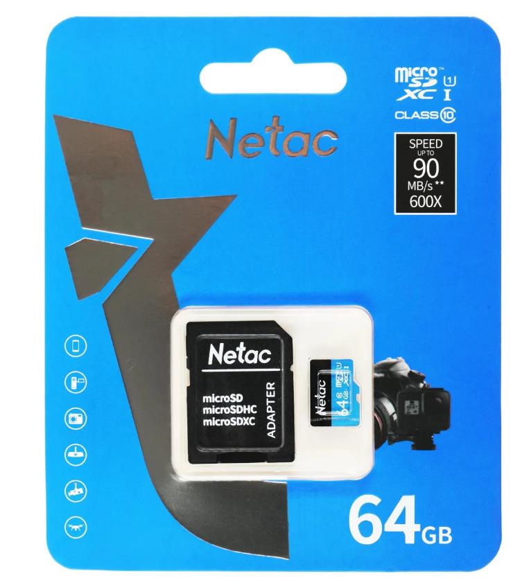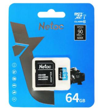 Карта памяти MICRO SDHC 64GB + ADP NT02P500STN-064G-R NETAC