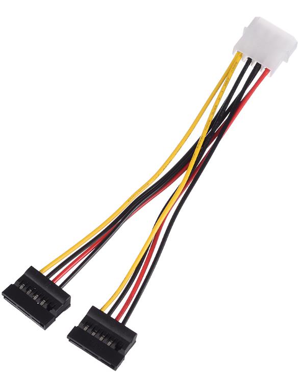 Кабель питания разветвитель MOLEX-2SATA предназначен для обеспечения питания жестких дисков (HDD и SSD), оптических приводов с разъемом SATA.