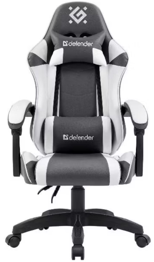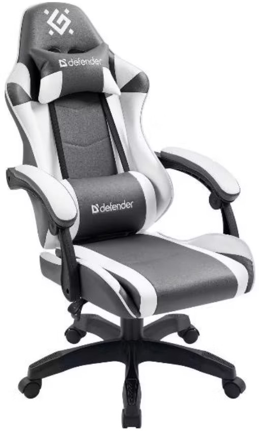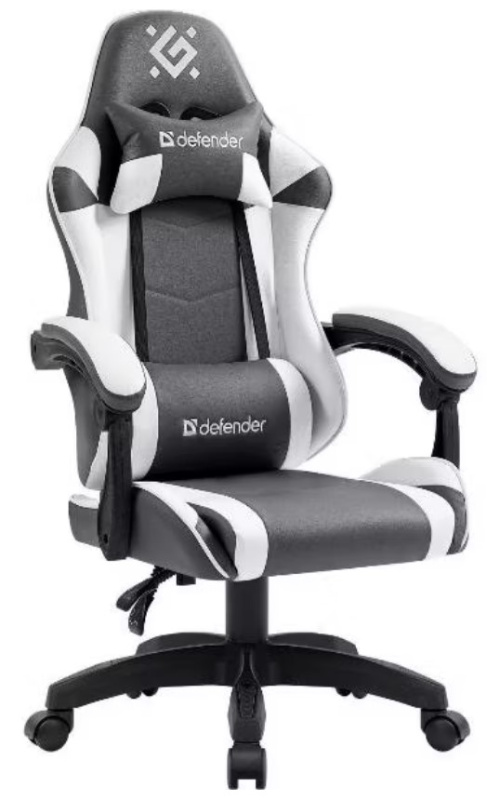 Игровое компьютерное кресло Defender Fortune 64026 черного цвета с белыми вставками оборудовано механизмом вращения и качания.
