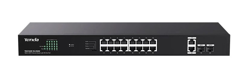 Tenda TEG1120P-16-250W - это гигабитный неуправляемый коммутатор Ethernet PoE. Коммутатор оснащен 16 гигабитными портами PoE, 2 гигабитными портами RJ45 восходящей линии связи и 2 портами SFP. Он поддерживает стандарт IEEE 802.3af/at и может автоматически обнаруживать PD и подавать питание. Максимальная выходная мощность одного порта составляет 30 Вт, а мощность всего коммутатора составляет 250 Вт. Он поддерживает монтаж в стойку, настройки одним переключателем, функцию plug and play и простое сетевое взаимодействие. Это идеальный выбор для предприятий малого и среднего бизнеса, отелей, школ и парков с требованиями к видеонаблюдению и беспроводным сетям.