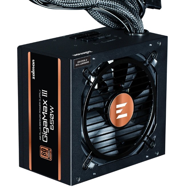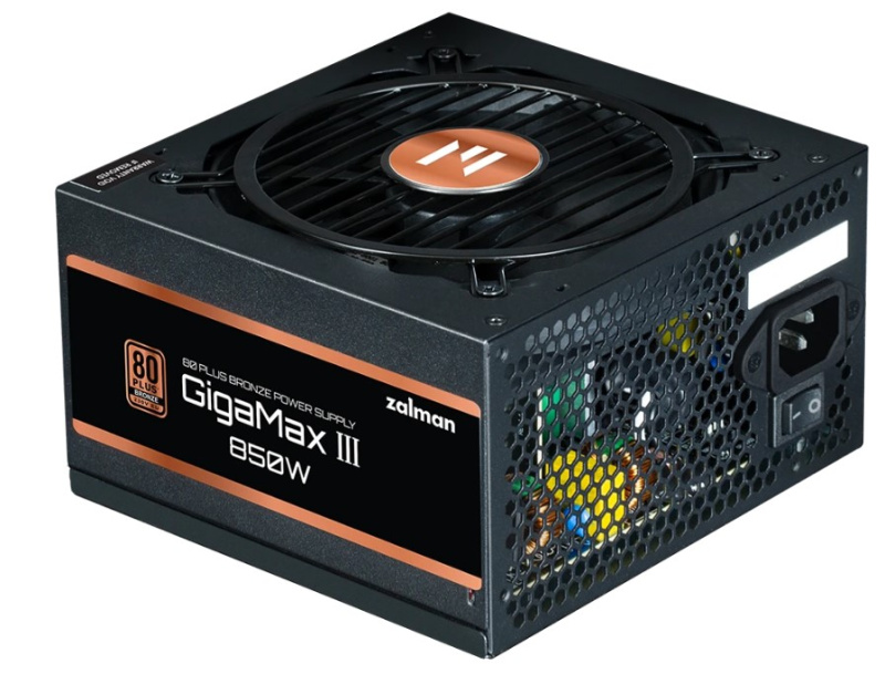 850-ваттный блок питания ZALMAN GigaMax III 850W [ZM850-GV3] – оснащение для мощного игрового или универсального офисного или домашнего компьютера. Модель имеет полумодульную конструкцию: часть кабелей подключается отдельно. Благодаря этому повышается качество вентиляции и улучшается организация внутреннего пространства системного блока. Источник питания поддерживает основные технологии защиты – OCP, OPP, OTP, OVP, SCP и UVP. Допускается подключение к сети с напряжением от 200 до 240 В. Высокую энергоэффективность устройства выражает соответствие сертификату 80 PLUS Bronze, а надежность – среднее время безотказной работы 100000 ч.