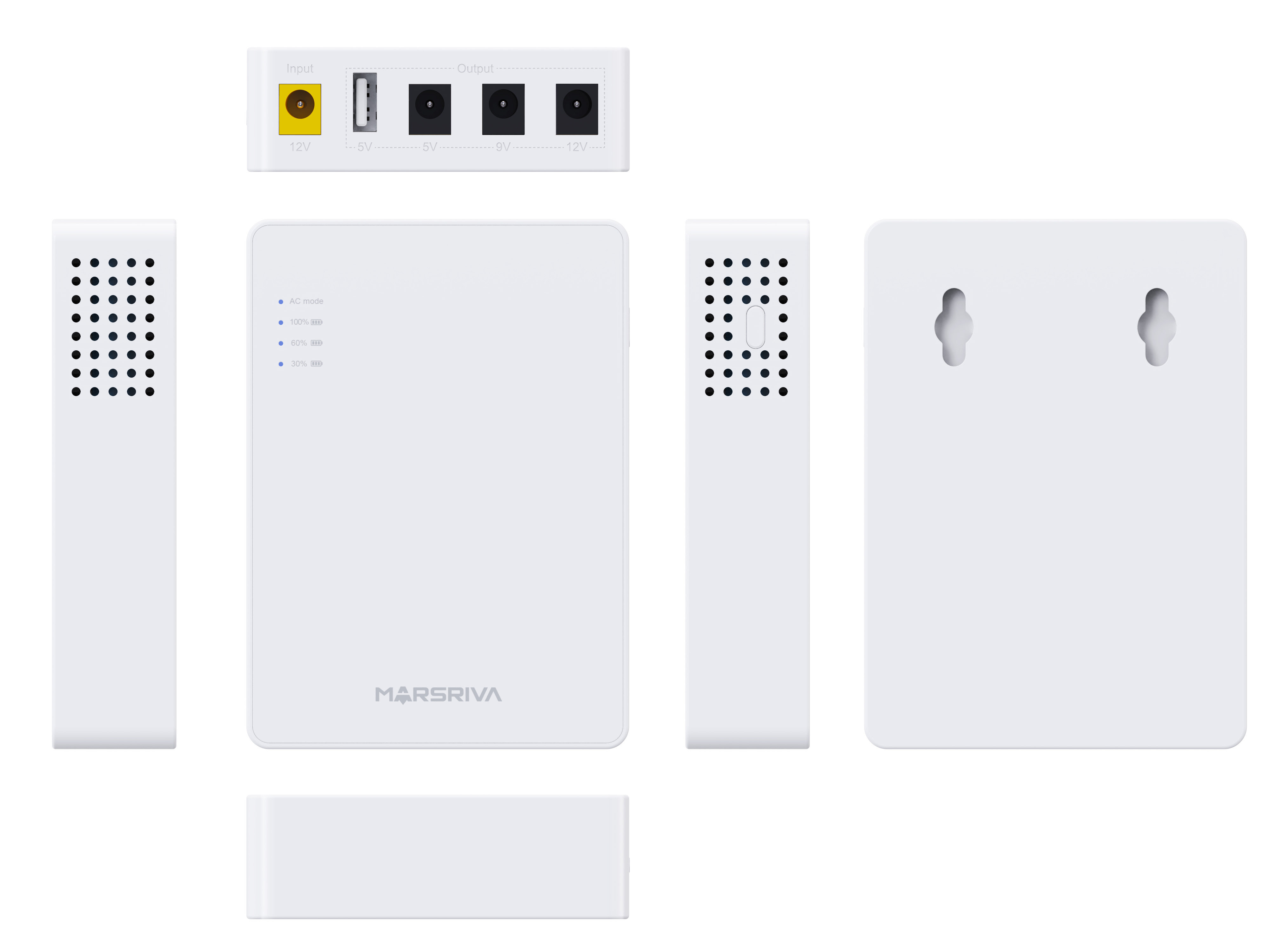 ИБП мини KP3 Pro, вход DC 12V/4.0A; независимый выход 12V, 9V, 5V DC, с USB 5V/2.1A, 36 Ватт макс., 10000mAh MARSRIVA