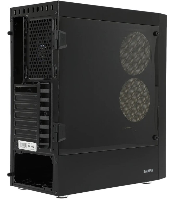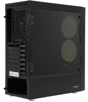 Собрать компьютер на основе материнской платы формата АТХ позволяет корпус ATX ZALMAN ZM-T7 типоразмера Midi-Tower. Он имеет два разъема USB 2.0, один USB 3.0 и аудио-разъем, расположенные на передней панели, что очень удобно во время эксплуатации. Возможность установки четырех накопителей формата 2,5 дюйма и двух формата 3,5 дюйма позволяет создать довольно большое хранилище данных. Для их установки имеются специальные несъемные корзины, имеющие поперечное расположение.