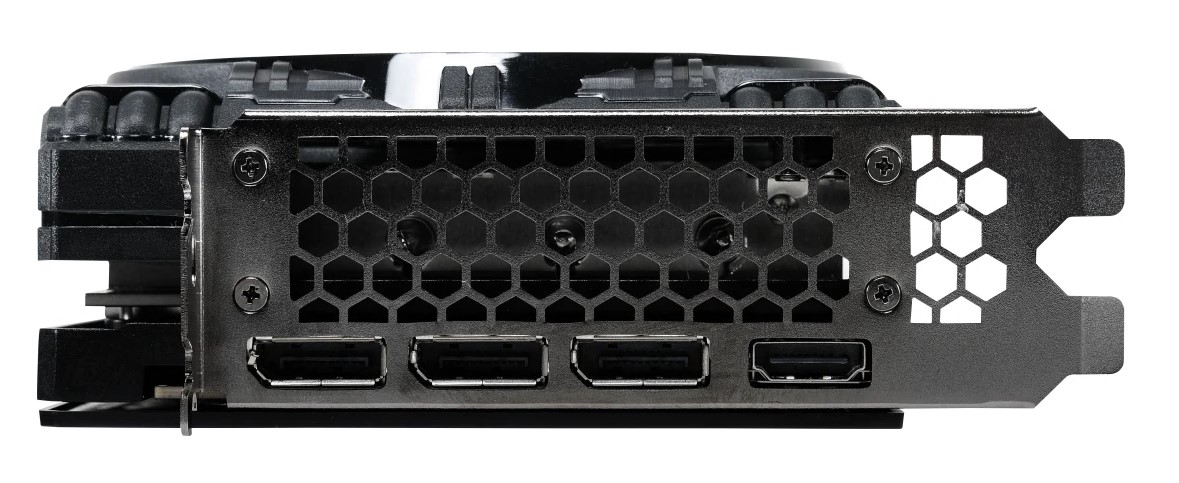 Подключение мониторов не станет проблемой: видеокарта предлагает разъёмы HDMI и три DisplayPort, поддерживая до 4 дисплеев одновременно с разрешением до 8K (7680x4320).