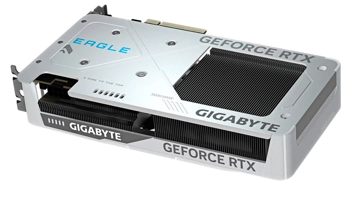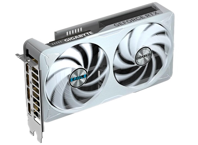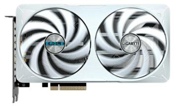 Видеокарта оснащена двумя мощными вентиляторами с альтернативным вращением, которые эффективно отводят тепло от радиатора с прямым контактом тепловых трубок. Это решение не только снижает уровень шума, но и продлевает срок службы компонентов. Дизайн EAGLE OC ICE выполнен в белом цвете, что делает её идеальным выбором для стильных сборок с прозрачными боковыми панелями.