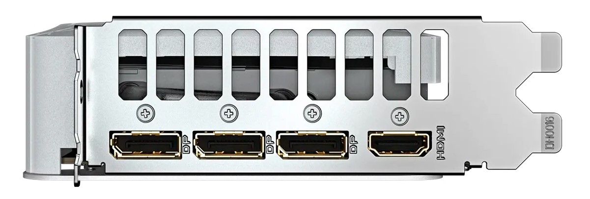 Для подключения мониторов доступны один HDMI и три DisplayPort, что позволяет организовать мультимониторную конфигурацию из четырёх дисплеев с максимальным разрешением 8K (7680x4320). Видеокарта требует дополнительного питания через 8-контактный разъём и рекомендуется для использования с блоком питания мощностью от 650 Вт.