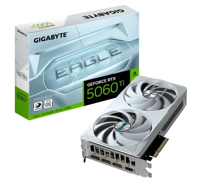 NVIDIA GeForce RTX 5060 Ti Gigabyte EAGLE OC ICE 8Gb (GV-N506TEAGLEOC ICE-8GD) – мощная и стильная видеокарта нового поколения, созданная для геймеров и творческих профессионалов, которые ценят высокую производительность, передовые технологии и элегантный дизайн. Основанная на революционной архитектуре NVIDIA Blackwell, эта модель предлагает исключительную скорость, реалистичную графику и энергоэффективность, оставаясь при этом доступной для широкого круга пользователей. Благодаря фирменному охлаждению WINDFORCE от Gigabyte и заводскому разгону, видеокарта гарантирует стабильную работу даже в самых требовательных играх и приложениях.