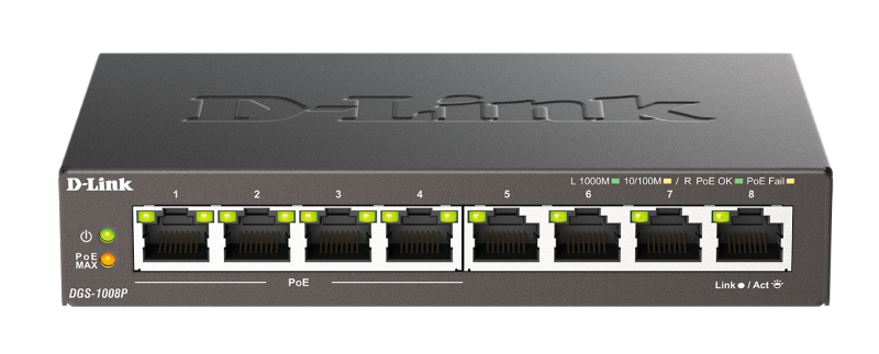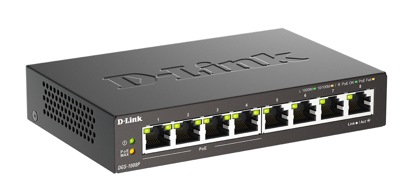 Коммутатор D-Link DGS-1008P с 8 портами 10/ 100/ 1000Base-T (4 порта поддерживают Power over Ethernet (PoE)) предназначен для домашних пользователей, а также малого бизнеса, и позволяет подключать и подавать питание по Ethernet-кабелям на такие устройства, как PoE-совместимые беспроводные точки доступа, сетевые камеры или IP-телефоны. Данный коммутатор оснащен пассивной системой охлаждения, которая обеспечивает бесшумную работу устройства, что позволяет поместить его практически в любой комнате или офисе.