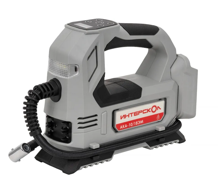 Аккумуляторный автомобильный компрессор предназначен для накачивания шин: автомобильных, мотоциклетных, велосипедных и др., а также мячей, надувных матрасов, бассейнов и т.п. Во избежание перекачки предусмотрена возможность предустановки максимального давления, при достижении которого аппарат автоматически отключается. Встроенный фонарь с несколькими режимами работы и подсветка дисплея позволяет использовать устройство даже в темное время суток.Модель АКА-10/ 18ЭМ питается от литийионных слайдерных аккумуляторных батарей (АКБ) и совместима с платформами АПИ 18 В, АПИ МАКС 18 В, а также бивольтовой АПИ 10/ 36 В и АПИ МАКС 10/ 36 В, что определяет ее универсальность, эффективность и, разумеется, мобильность – благодаря отсутствию сетевого провода, ограничивающего свободу перемещения.Эргономичный обрезиненный корпус и продуманная конструкция опор обеспечивают удобство эксплуатации и снижают уровень вибрации при работе компрессора, а специальный разъем для подключения к бортовой сети питания автомобиля через гнездо прикуривателя (необходимый кабель входит в комплект поставки) позволяет использовать его даже без аккумуляторной батареи. Давление на дисплее может отображаться в различных единицах измерения: килопаскалях (кПа), барах (bar), килограмм-силах на квадратный сантиметр (кгс/см2) и фунт-силах на квадратный дюйм (psi).