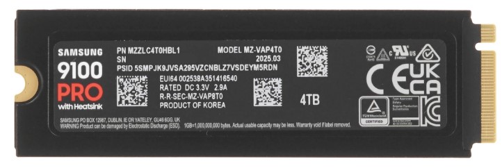M.2 NVMe накопитель Samsung 9100 PRO [MZ-VAP4T0CW] с объемом 4000 ГБ – оснащение для игровых и универсальных компьютеров. Модель форм-фактора 2280 совместима почти с любыми материнскими платами стационарных ПК и многими ноутбуками. Накопитель обеспечивает скорость последовательного чтения до 14800 МБ/с. Соответствующий показатель для записи – 13400 МБ/с. Максимальный ресурс записи устройства – 2400 ТБ. SSD совместим с консолями PS5.