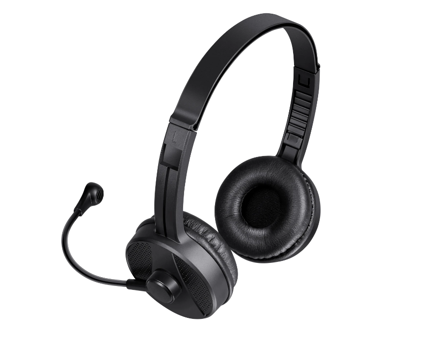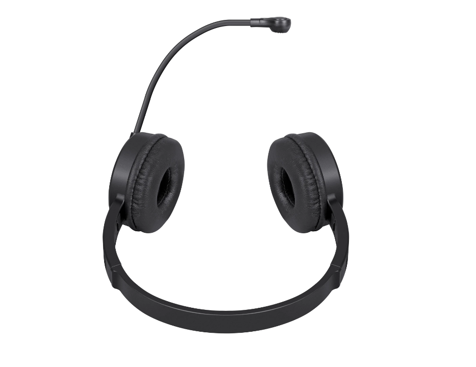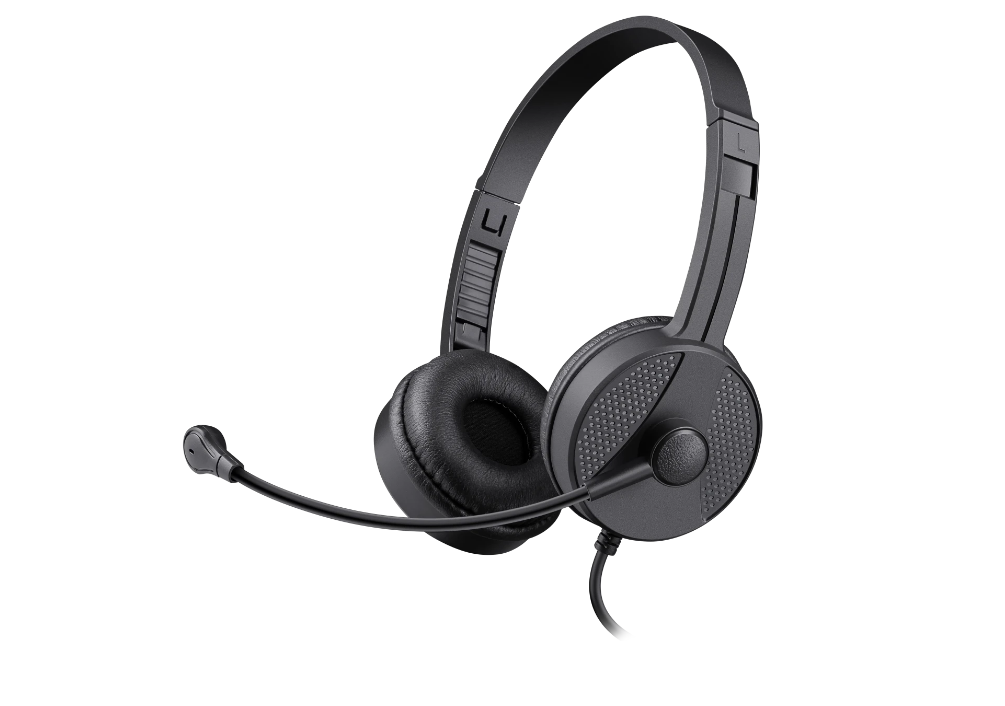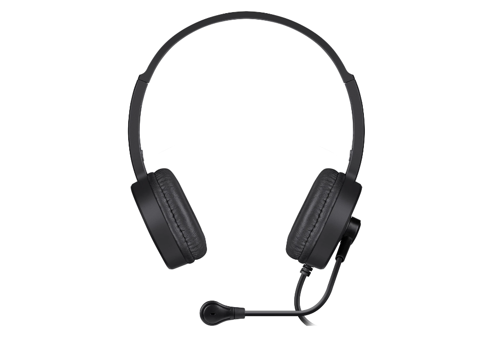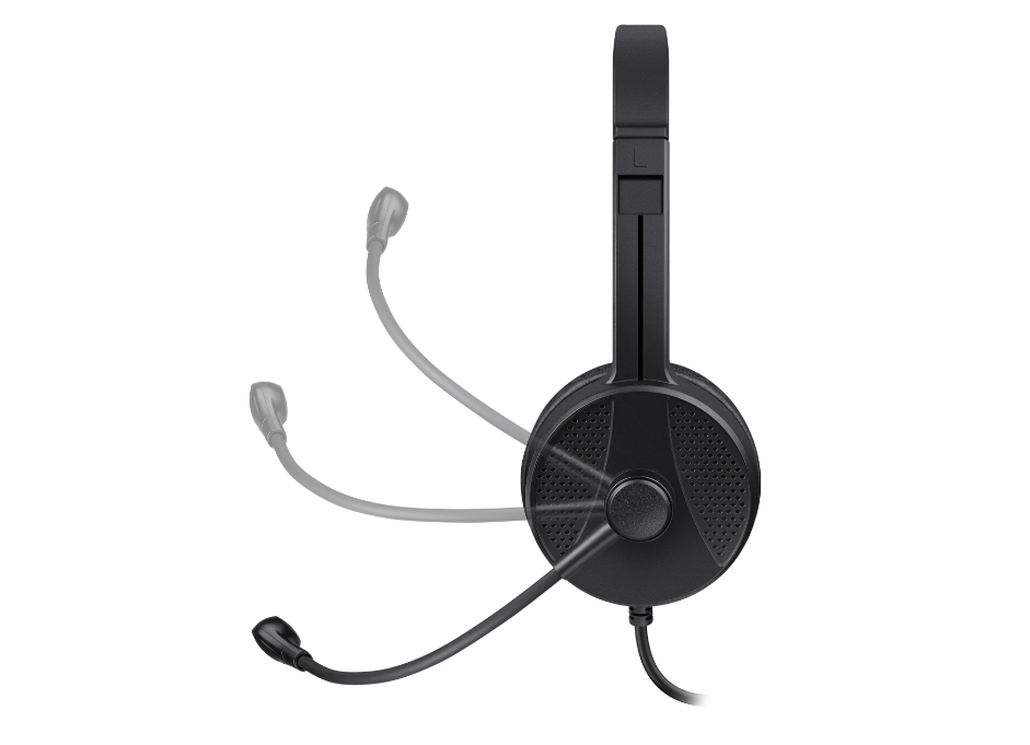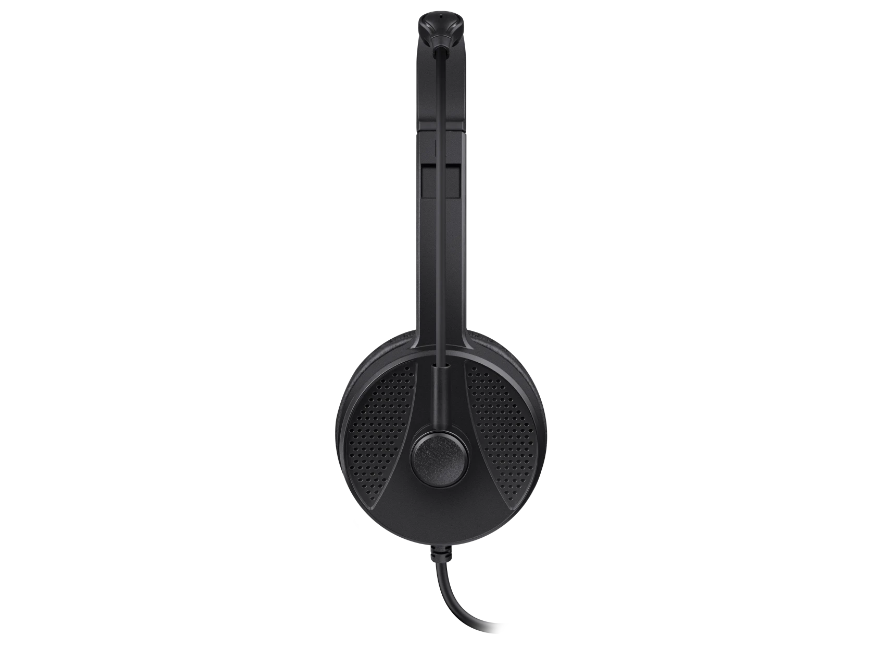 Удобная компьютерная гарнитура с гибким микрофоном, мягкими амбушюрами и регулятором громкости.