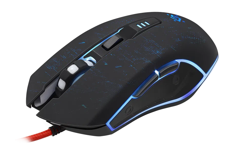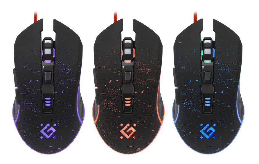 Удобная проводная геймерская мышь с радужной подсветкой. Данная модель имеет 6 режимов разрешения от 1200 до 7200 dpi. Также у мышки предусмотрены боковые кнопки "Вперед" и "Назад" и тефлоновые ножки для быстрого скольжения. Мышь поставляется в комплекте с ковриком.
