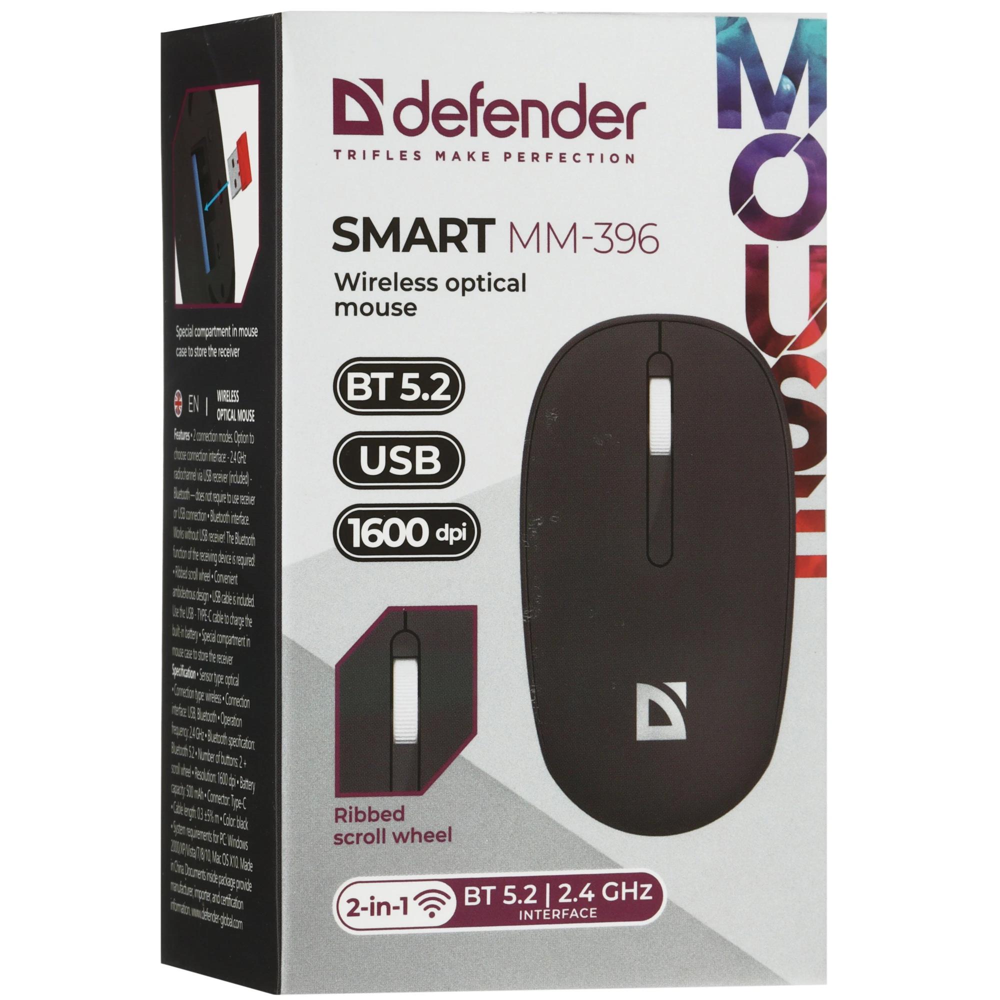 Мышь беспроводная Bluetooth/2.4G 3кн. 1600dpi черн. Smart MM-396 52396 DEFENDER