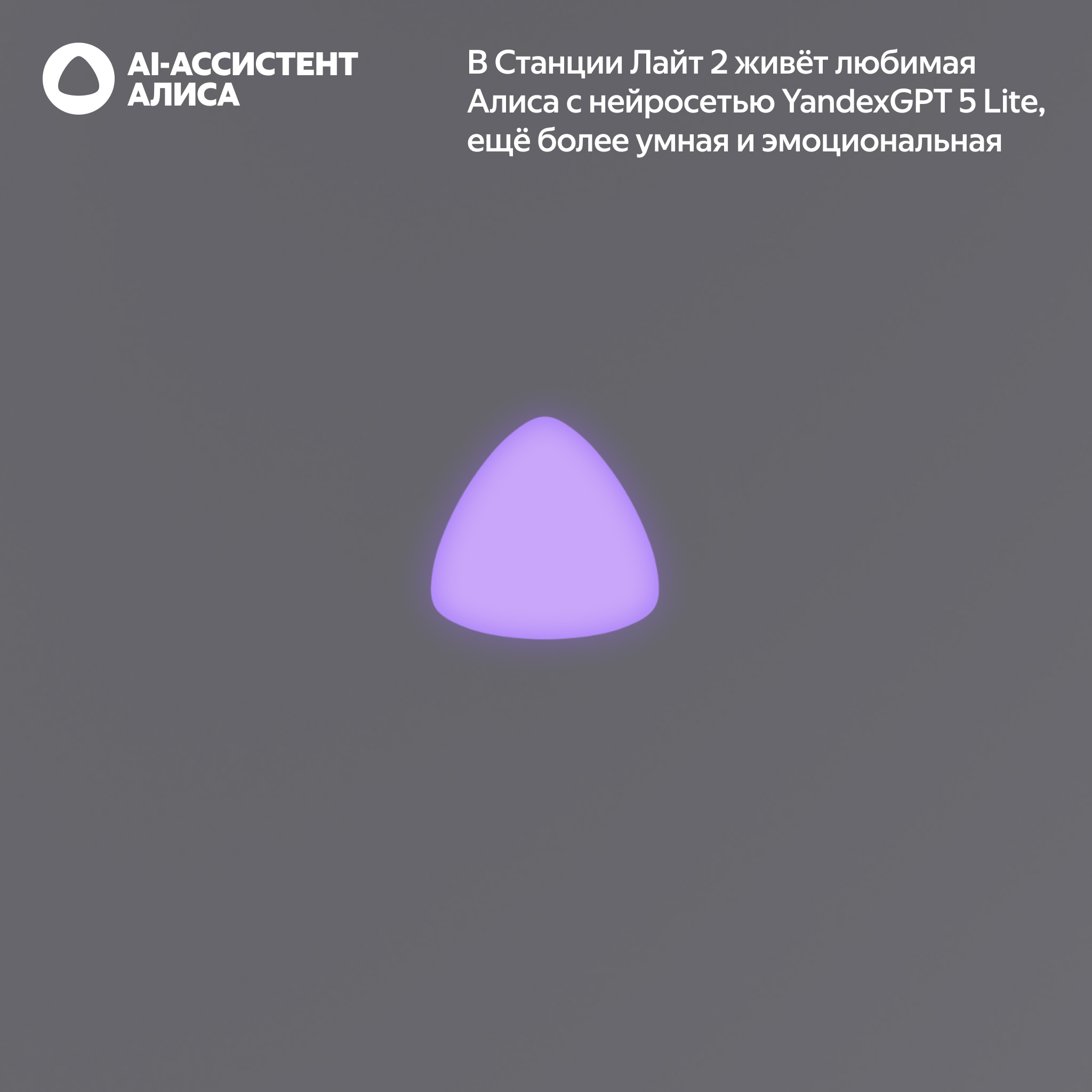 Чистое звучание - Благодаря корпусу с увеличенным акустическим объёмом и динамику мощностью 6 Вт любимые треки на Станции Лайт 2 звучат ещё чище и насыщеннее. AI-ассистент Алиса внутри С Алисой можно веселиться, делиться секретами, играть и общаться дни напролёт — она всегда готова придумать креативные идеи, ответить на миллион вопросов, помочь с рутинными делами, включить любимую музыку или просто поддержать диалог. А если подключить опцию Алиса Про, у детей разного возраста появится множество развивающих игр и квестов на каждый день, а у родителей — возможность уделить больше времени себе.