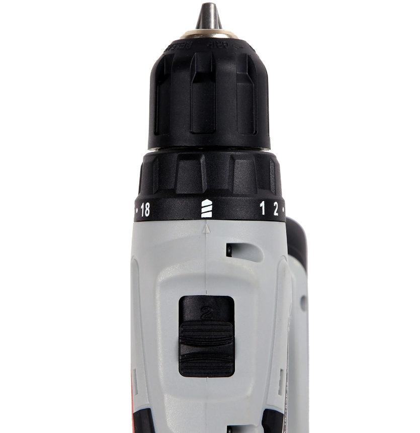 Компактная двухскоростная аккумуляторная дрель-шуруповерт ИНТЕРСКОЛ ДА-10/ 18ЭР 35 предназначена для решения разнообразных задач в домашнем хозяйстве, частной мастерской, на даче, в гараже, при выполнении строительно-ремонтных работ и т.д. Модель обладает двухскоростным планетарным редуктором с металлическими шестернями, механическим переключением диапазонов скоростей и удобной регулировкой оборотов усилием нажатия на кнопку пуска. Это позволяет уверенно закручивать и откручивать шурупы, саморезы, винты, болты, гайки и прочий крепеж на 1-й (пониженной) передаче, а также эффективно сверлить отверстия в различных материалах – древесине и ее производных, металлах, пластике, композитах и т.д. на 2-й (повышенной) передаче. Муфта ограничения крутящего момента («трещотка») с 18+1 положениями настройки дает возможность точно дозировать усилие затяжки, чтобы не перетянуть крепеж и не испортить заготовку.