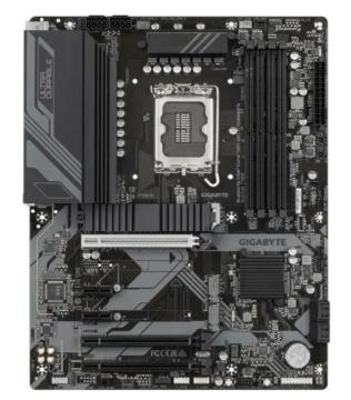 Материнская плата GIGABYTE Z790 D работает под управлением производительного чипсета Intel Z790, который раскрывает потенциал многоядерных процессоров и расширяет возможности разгона многих из них. Модель совместима с CPU Intel с ядрами Alder Lake, Raptor Lake и Raptor Lake Refresh. Плата с размерами 305x244 мм соответствует форм-фактору Standard-ATX и ориентирована на сборку мощного игрового или универсального компьютера. Поддерживается память DDR5, частота которой в разгоне может достигать 7600 МГц. Для управления вентиляторами используется утилита Smart Fan 6 с поддержкой функции FAN STOP. Устройство защищено от перегрева пассивным охлаждением зоны VRM, чипсета и одного из разъемов M.2.