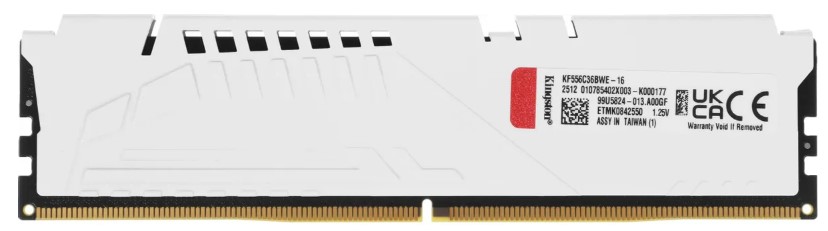 Оперативная память Kingston FURY Beast White AMD [KF556C36BWE-16] использует повышенное до 1.25 В напряжение питания. Устройство защищено от перегрева радиатором. Элемент охлаждения эффектно выглядит: он окрашен в белый цвет.
