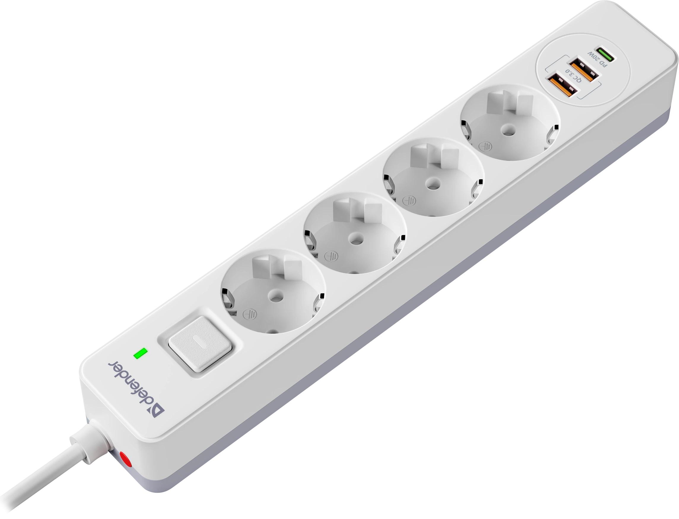 Сетевой фильтр 3м 3*1.5кв.мм 4розетки 16A 230В 2хUSB+Type-C белый DFS 143 99434 DEFENDER