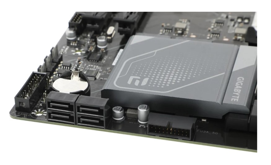 Система охлаждения платы включает радиаторы на зонах VRM и чипсете, а также предусматривает крепления для радиаторов M.2 — это помогает поддерживать стабильную работу компонентов под нагрузкой. Для подсветки предусмотрены разъёмы 30pin ARGB (5 В) и 40pin RGB (12 В), которые можно синхронизировать через фирменное ПО Gigabyte RGB Fusion 2.0 или Gigabyte Control Center.