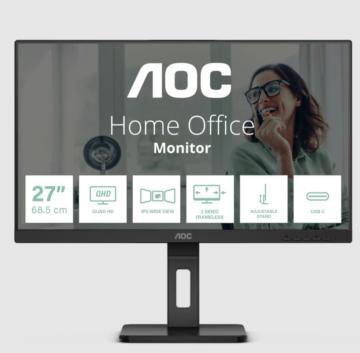 Монитор AOC 27" Q27P3CV, 16:9, IPS, QHD, 4ms, 350cd, 75Hz, HDMI, DP in, DP out, USB, USB-C, LAN, SPK, HAS