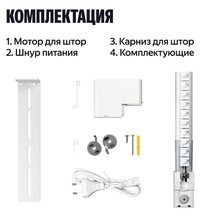Умный карниз для штор Яндекс, длина 2,4-4,5м, работает с Алисой, Zigbee, YNDX-00592