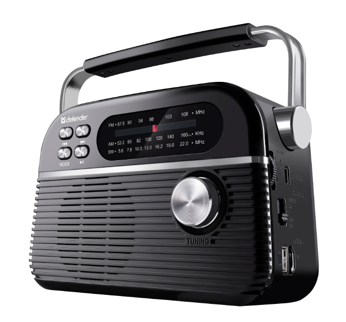 Портативный беспроводной FM/AM/SW радиоприемник с Bluetooth 5.3 и поддержкой флеш накопителей и карт памяти microSD.