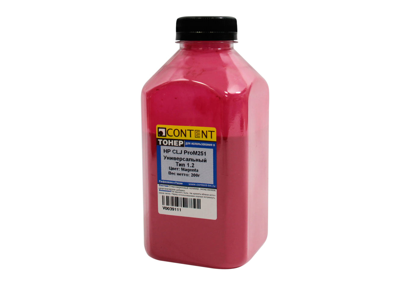 Тонер Content Универсальный для HP CLJ ProM251, Тип 1.2, M, 200 г, банка